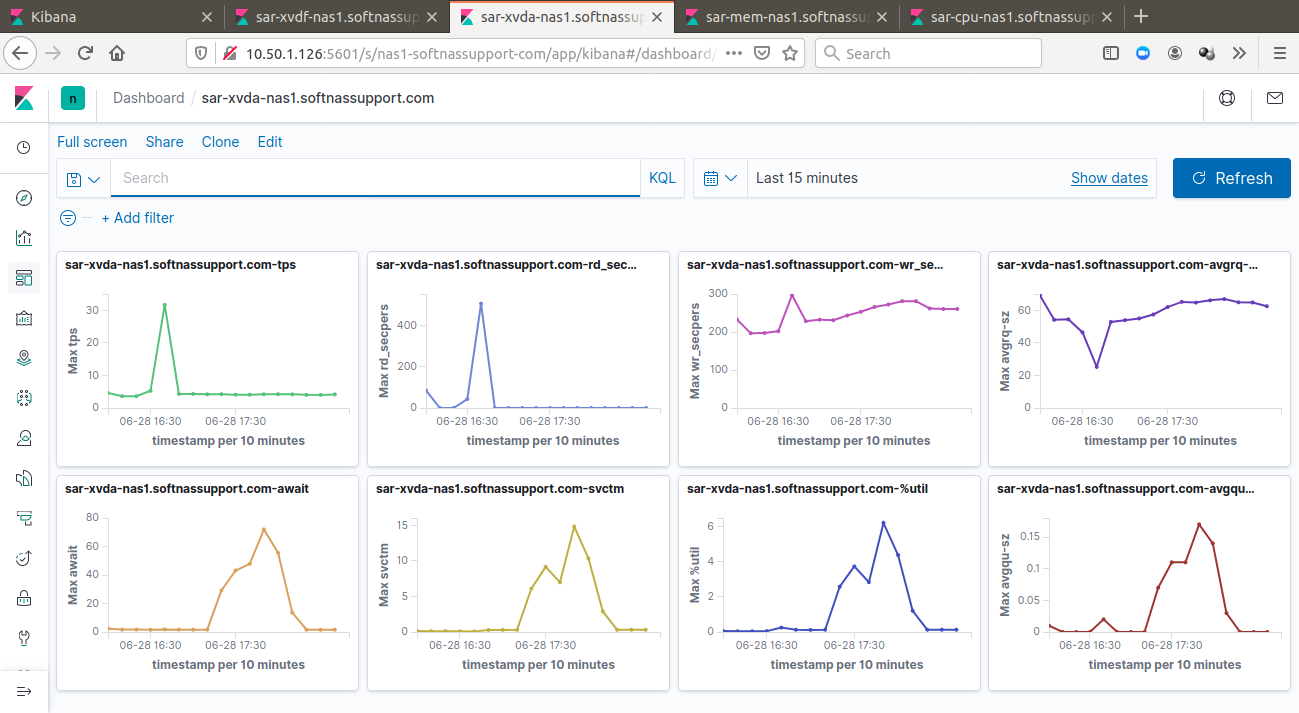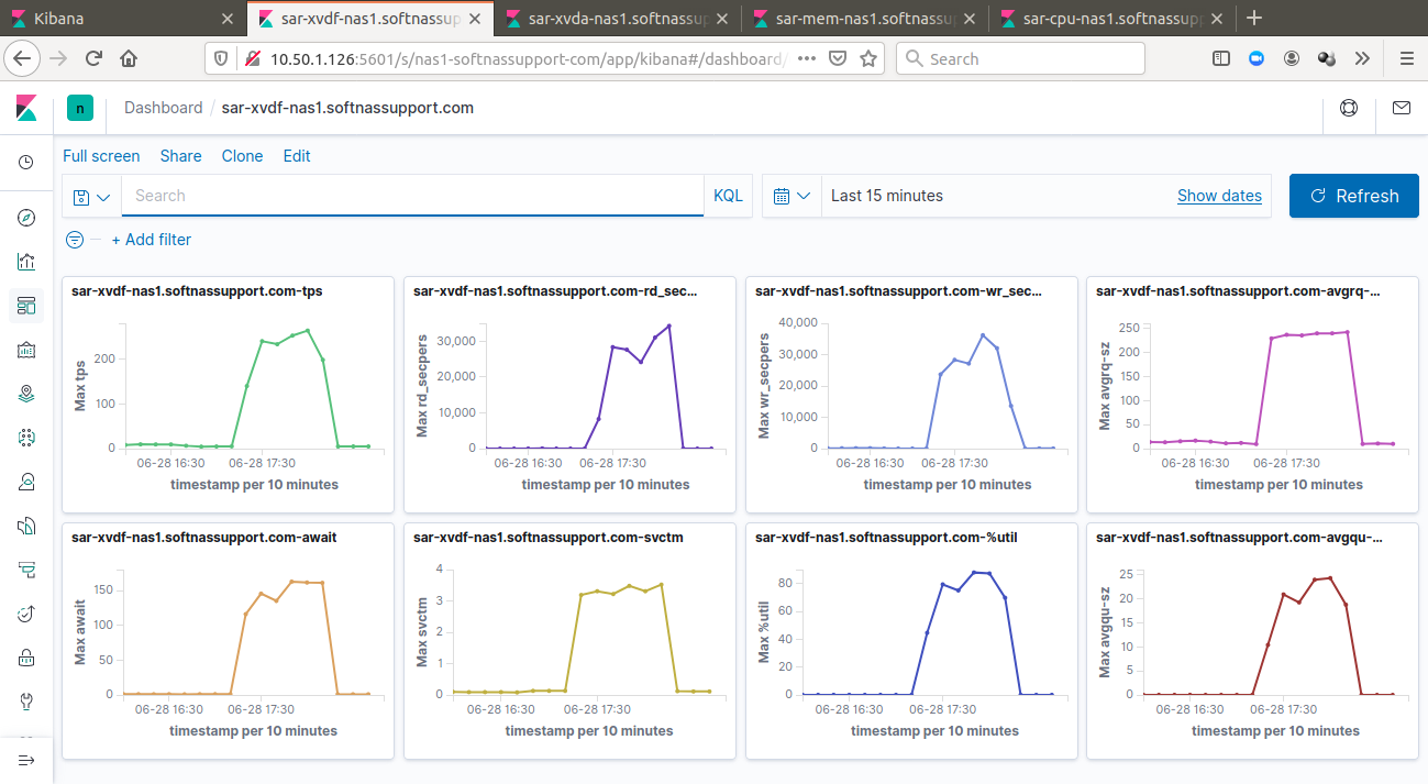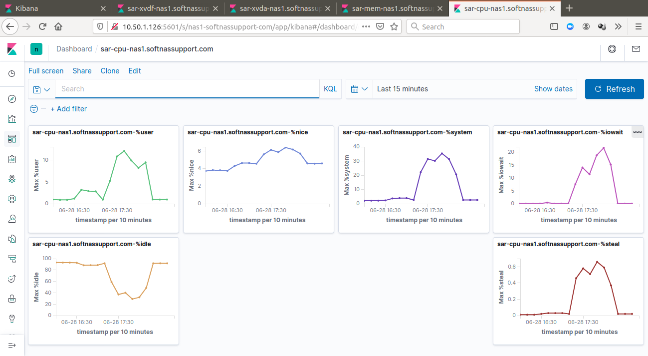 The older Sar versions simply don’t have an option to produce graphics. Still, Sar logs are well structured and Elasticsearch is a powerful tool to process logs in 2 easy steps: