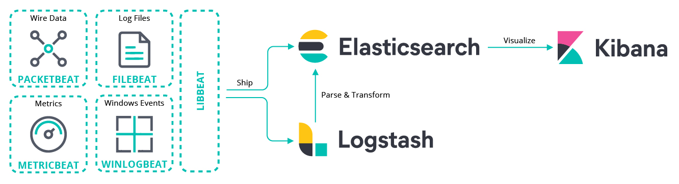 So, these capital letters comprise what used to be called an ELK stack – E from Elasticsearch, L from Logstash, and K from Kibana. These days we tend to include Beans into the Stack and call it Elastic Stack.