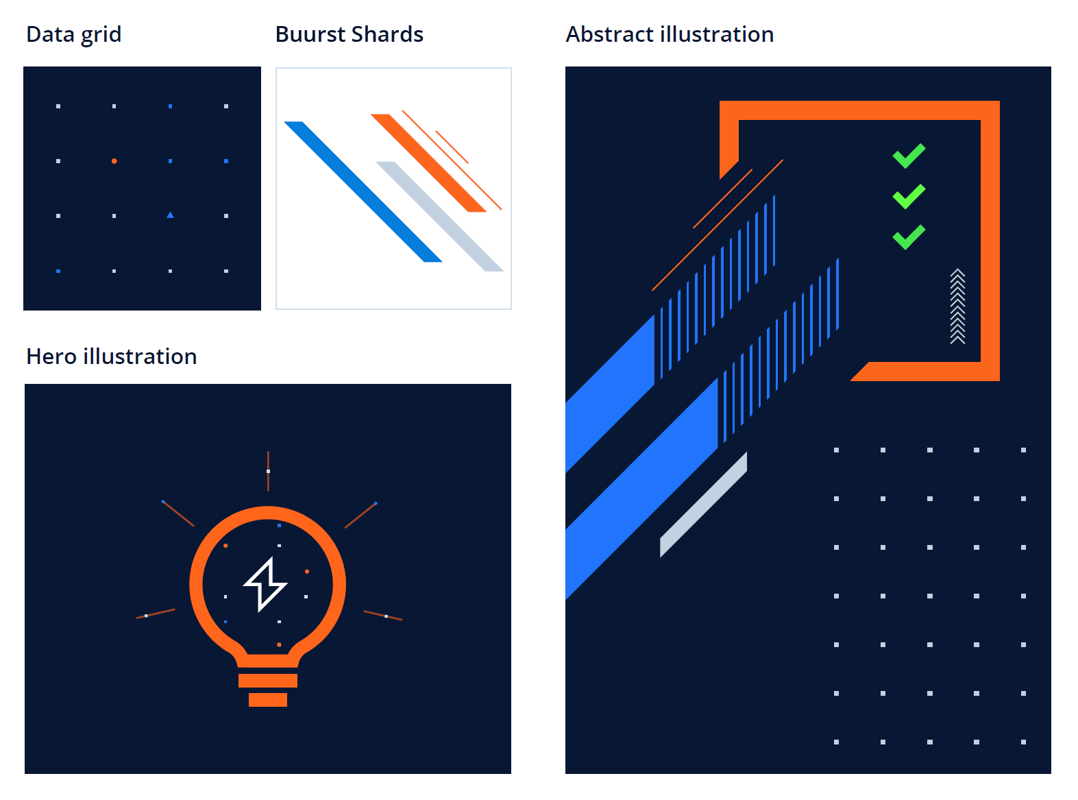 Illustration allows us to differentiate from competitors and connect with our audience through visual storytelling that is powerful, modern, and balanced. Our illustrations are created with purpose, conveying technical concepts and incorporating brand elements like color and iconography. We do NOT use hand-drawn styles of illustration.