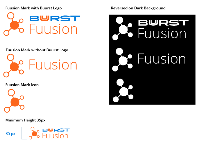 Buurst is our logo. The secondary product mark is for our product: Fuusion. It builds on the energy and trust of the Buurst Logo.
