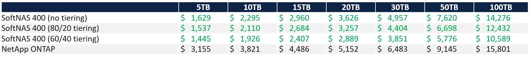 SoftNAS 400 VS NetApp ONTAP Pricing on Azure