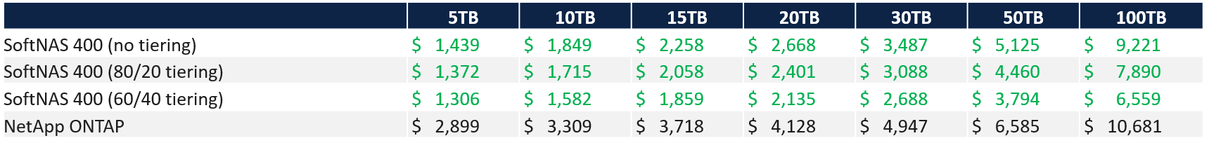 SoftNAS 400 VS NetApp ONTAP Pricing on AWS